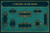 Ornaments - Vol.03 includes 80 vector elements and 8 premade frames. The set is perfect for splendid vintage design, especially for logos, signage, invitation cards and posters. Create your own compositions with single elements or use our ready to use frames and speed up your workflow!