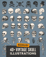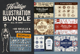 The Heritage Illustration Bundle combines our 4 popular illustration sets into one big package. And as a free bonus, we included over 40 skull & skeleton illustrations. This means you can now get more than 130 illustrations and 34 logo templates at a huge discount. The handcrafted illustrations are a great add on for logo design, T-shirts, branding purposes and much more! All elements are professionally drawn and included as vector and PNG files to work in multiple software such as Adobe Illustrator, Photoshop, Affinity and others.