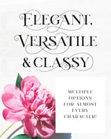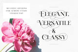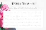 Please note: The special alternate characters and swashes require advanced graphic software like Adobe Illustrator, InDesign, Photoshop, Inkscape or similar. We can’t guaranty complete usability in basic text software like Microsoft Word or similar.