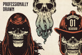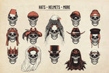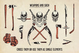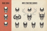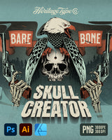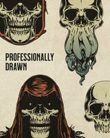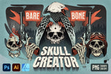 All illustrations are handcrafted with great attention to detail. The skull creator works best with Adobe Photoshop, Adobe Illustrator or Affinity Designer. All the elements are also supplied as PNG and PDF, which can be used in almost any graphic software.