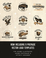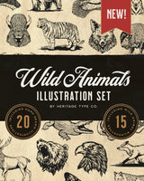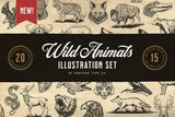 The Wild Animals - Illustration Set includes 20 animal drawings and 15 silhouettes in vector and PNG format (Bear, Eagle, Fox, Stag, Bison, Wolf, Crocodile, Snake, Tiger, Buffalo). The handcrafted illustrations are a great add on for logo design, T-shirts, branding purposes and much more!