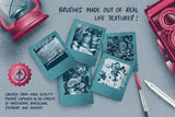 This Brush Set will be your absolute companion – your TO-GO Pack on all of your creative endeavors! These Brushes are a result of thousands of pictures captured during our travels. They were made to provide realistic bumpy touch to your illustrations and lettering artworks.