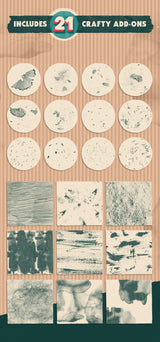 We’ve also included 36 ripped papers 21 crafty add-ons (including ink textures and pencil scraps) that will help you build up your compositions in no time. The amount of possibilities is endless!