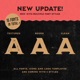 • NEW UPDATE – 3 Font Styles: textured, rough & clean