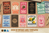 We know this can be a super hard and time-consuming challenge. That's why we worked half a year to design a stunning collection of vintage label templates, fonts and ornaments for various categories to save you tons of time and sweat. All components and labels are inspired by original vintage ephemera from the late 19th century – professionally recreated by our team.