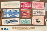 The Nostalgic Font and Label Collection includes 34 customizable vector label designs, 4 unique vintage fonts and over 140 separate elements with a super high quality design standard. All templates are easy to edit and can be customized to beautiful individual designs.