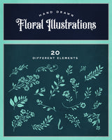 - A set of 20 floral illustrations; hand drawn (AI, EPS, PDF, PSD, afdesign, PNG)