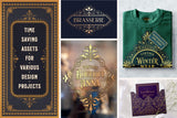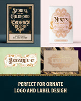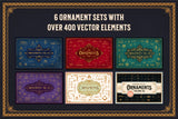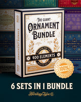 The Giant Ornament Bundle combines our 6 popular ornament sets into one big package. This means you can now get more than 400 vector elements at a huge discount. These elements will save you tons of time in various design projects and work perfectly for vintage logos, emblems, invitation cards, packaging, book covers and labels. All elements are professionally drawn and included as vector and PNG files to work in multiple software such as Adobe Illustrator, Photoshop, Affinity and others.