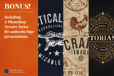 Including FREE Bonus: 3 Photoshop Texture Effects for authentic logo presentations